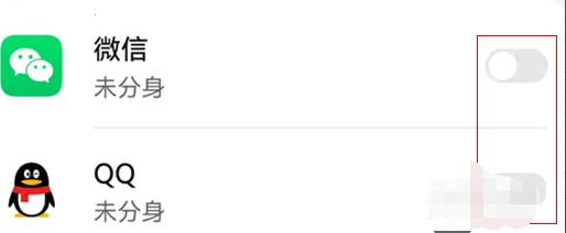 3、在应用分身界面,将要分身的应用开关打开即可。
