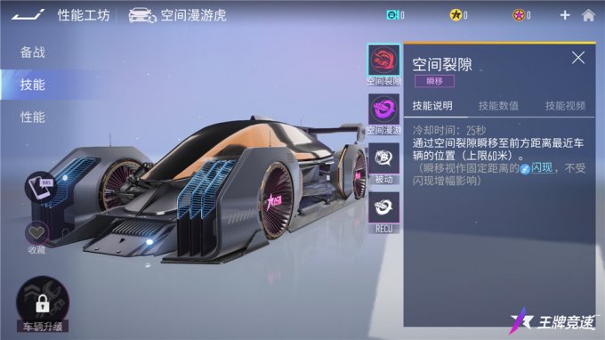 值得注意的是,制造空间裂隙是空间漫游虎的本源能力,无需消耗任何能量,但每次施展完该SP技能后,需间隔25秒后方能再次使用,请车手们精准把握释放时间,在最关键时刻瞬间逆转战局!