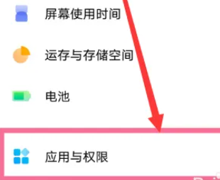 2、然后找到“设置”中的“应用与权限”,