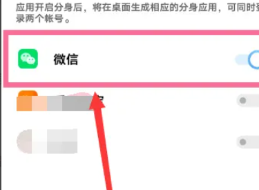 4、最后选择并开启“微信”就可以使用微信双开。