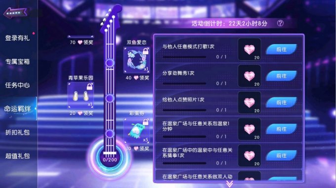 命运羁绊玩法上线,双重福利一起嬴!回归玩家和活跃玩家建立命运羁绊,携手完成羁绊任务,共获全新活动限定情侣服【青苹果乐园】,享受青涩爱恋,邂逅命中注定的你~